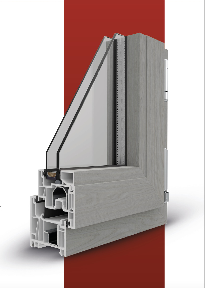 Struttura costruttiva a 6 camere per il telaio e 5 per l'anta che consente un elevata resistenza termica.